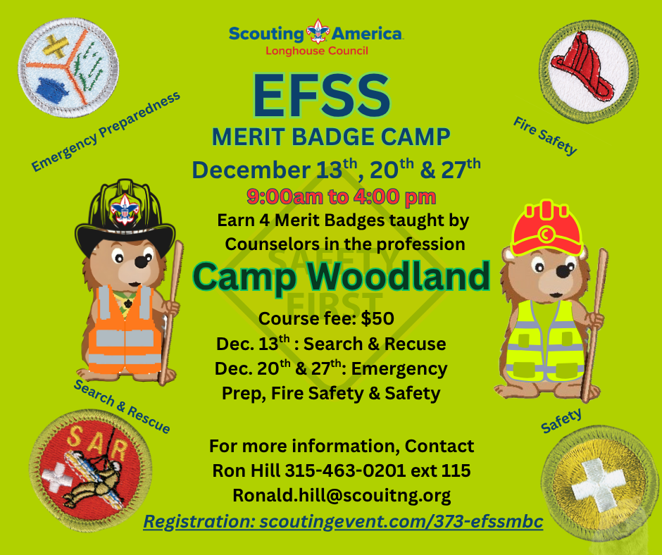 Are you ready to enhance your skills and earn valuable merit badges? Join us for three Saturdays in December and gain comprehensive knowledge in Emergency Preparedness, Fire Safety, Safety, and search & rescue. Experienced professionals lead each session in their respective fields.